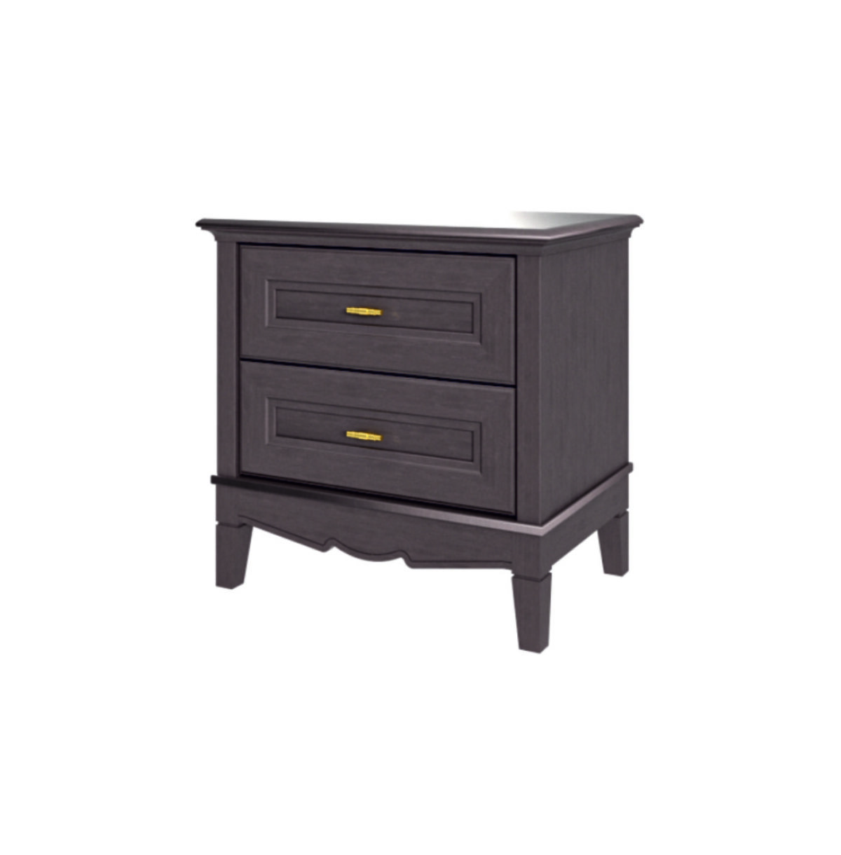Прикроватная тумба из коллекции «Меган» с массивными ножками и декоративной фрезеровкой на передней царге. Основание выполнено из качественного ДСП в шпоне дуба.